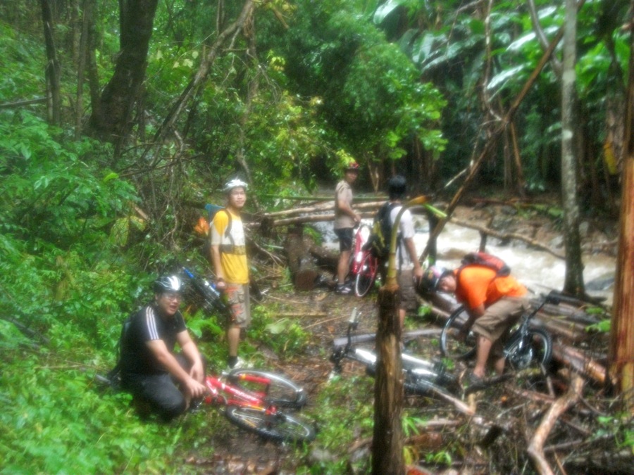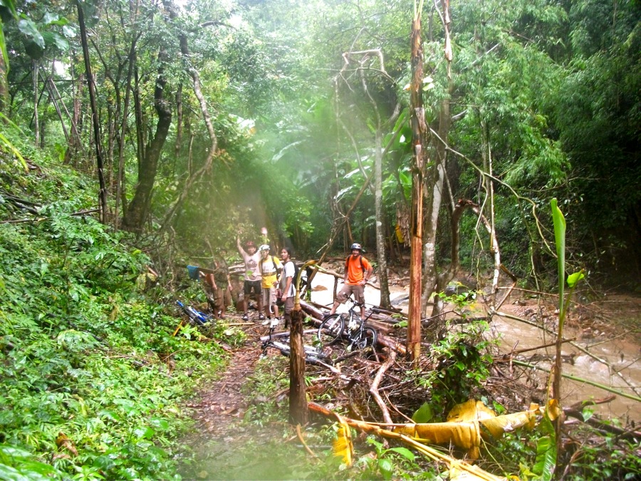 ก่อนไปอากาศสดใส บรรยากาศสดชื่น แต่พอปั่นเลยเวียงเหนือไปแล้วฝนกลับสาดโครมๆ ดินถล่ม โคลนดูด น้ำป่าไหลหลาก ต้นไม้ล้มขวางทาง สะพานขาด จักรยานพัง ฯลฯ